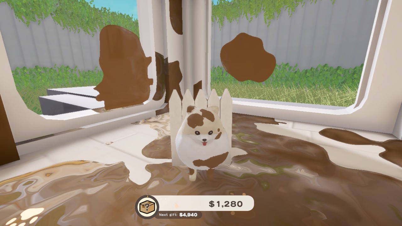 주인공은 귀여운 포메라니안 강아지로 먼지 하나 없이 깨끗한 집을 더럽히는 간단한 게임입니다.