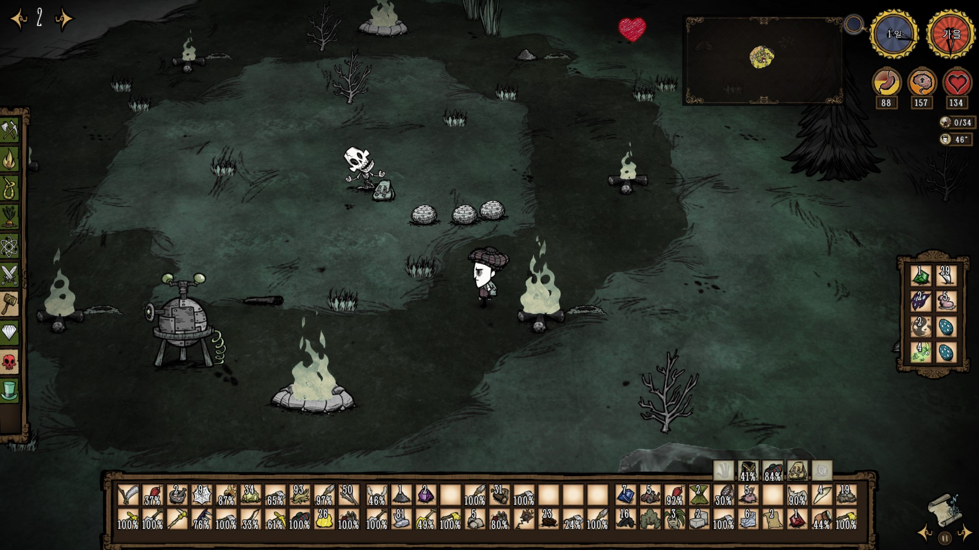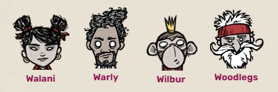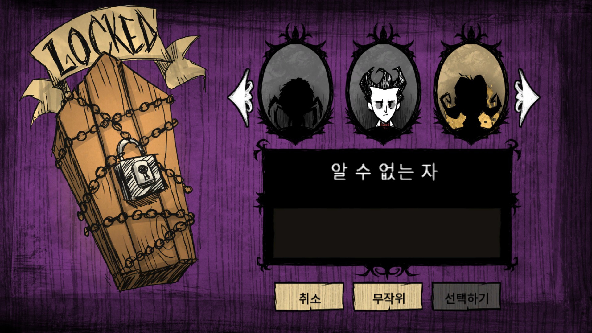 또한 돈스타브는 처음 시작 시 플레이 가능한 캐릭터는 윌슨 한개 뿐이고 나머지는 해제를 해야 됩니다.