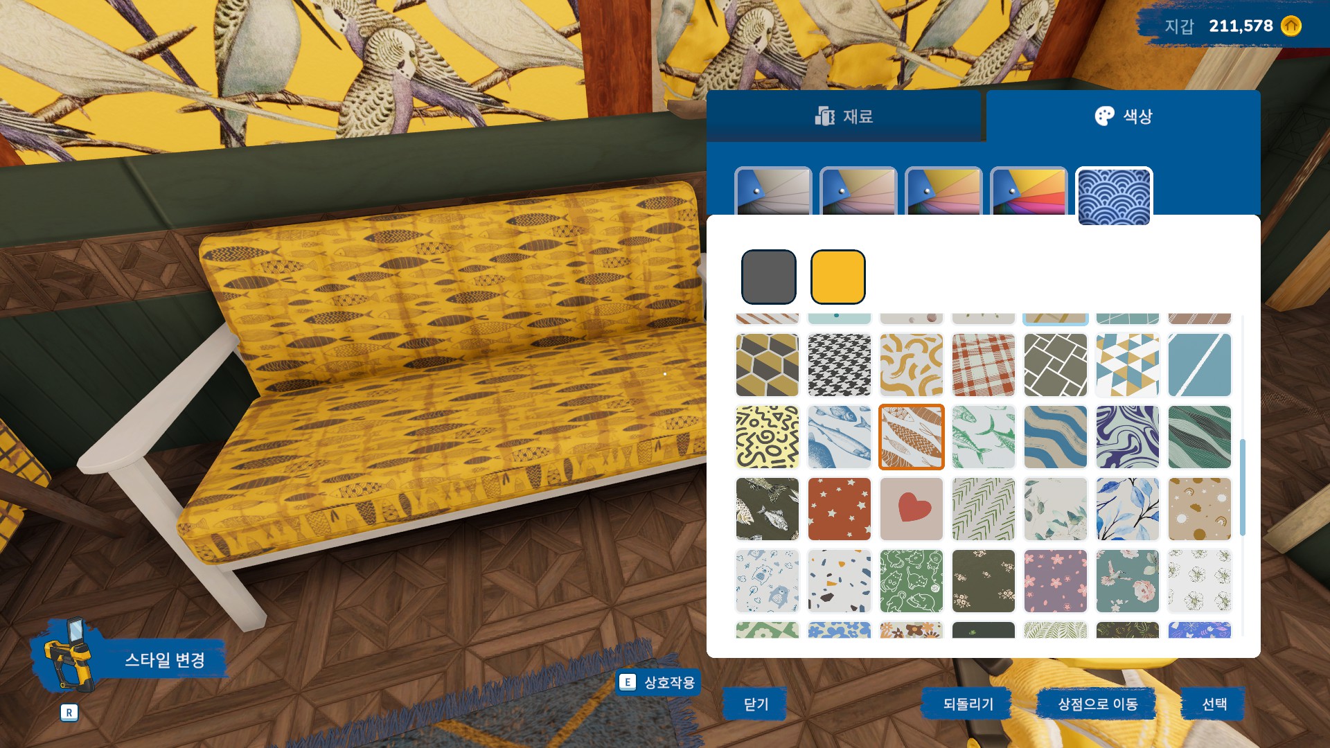 하우스 플리퍼 2편에서는 고를 수 있는 가구의 색상의 수가 굉장히 늘어났으며 또한 다양한 패턴의 무늬도 추가되었습니다!