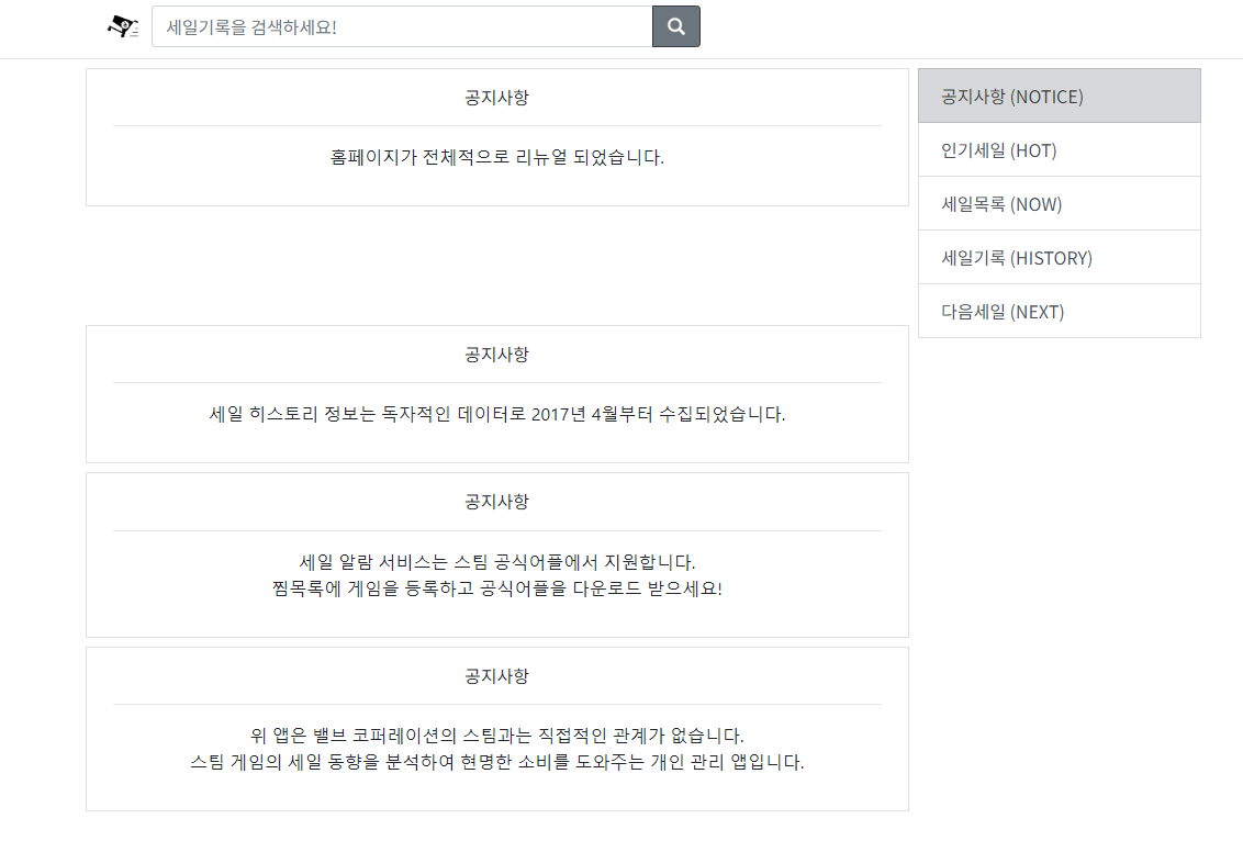 스팀 세일 정보 및 기록을 제공하는 사이트입니다.