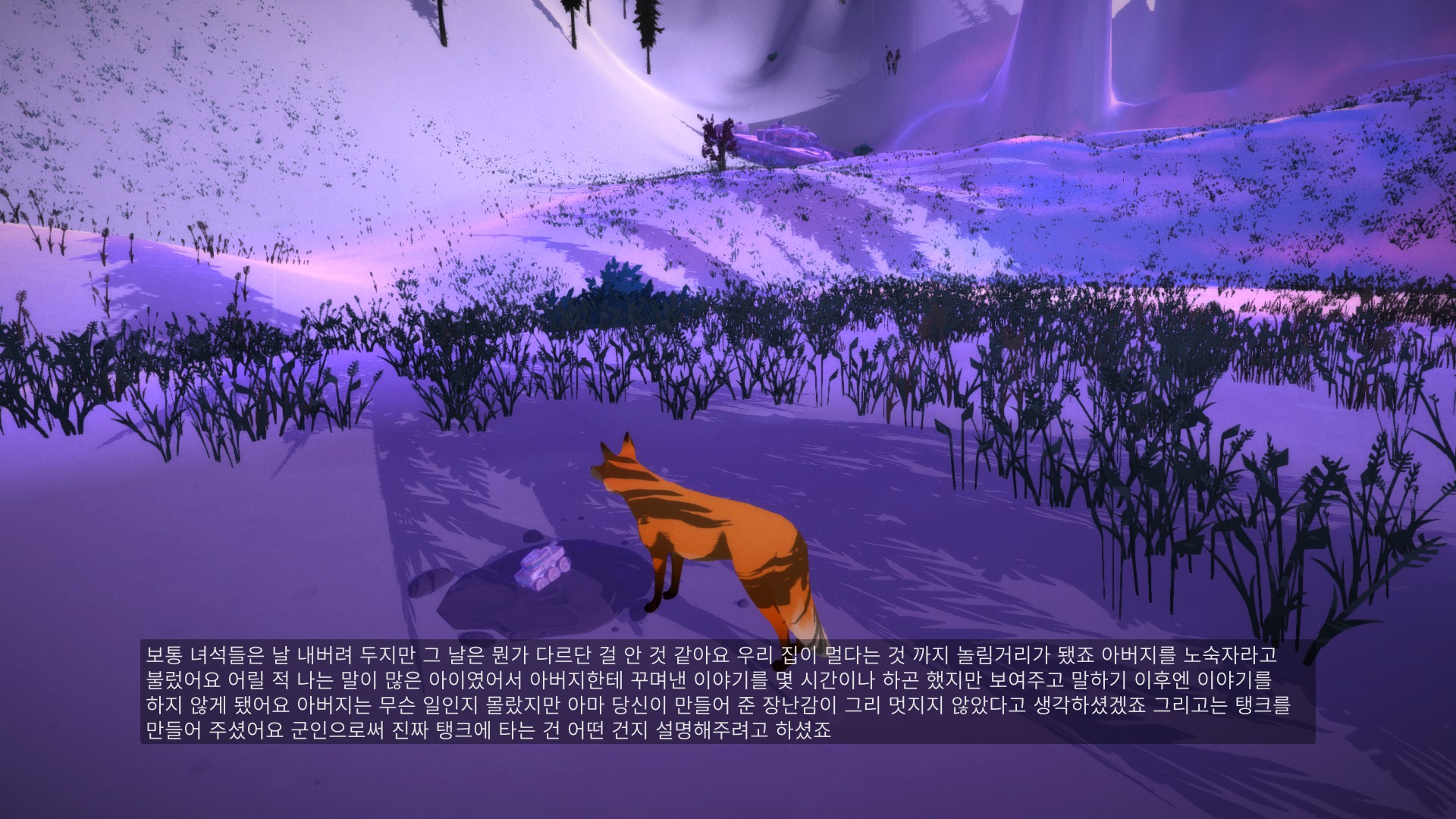 하지만 이 게임에는 주인공이 한명 더 있는데요. 플레이어가 여우로 게임을 플레이 하면 중간중간에 가족을 찾는 누군가의 나레이션이 깔리게 됩니다.