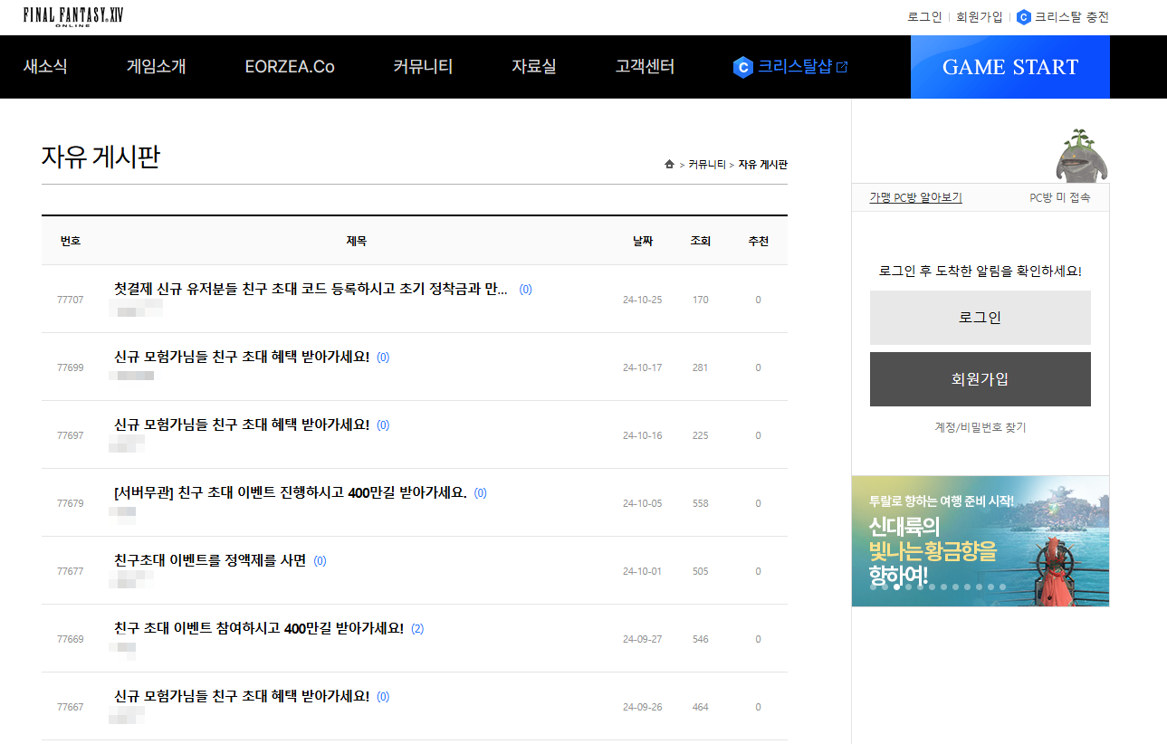 인벤, 파이널판타지14 커뮤니티의 자유게시판 을 이용하시면 됩니다.