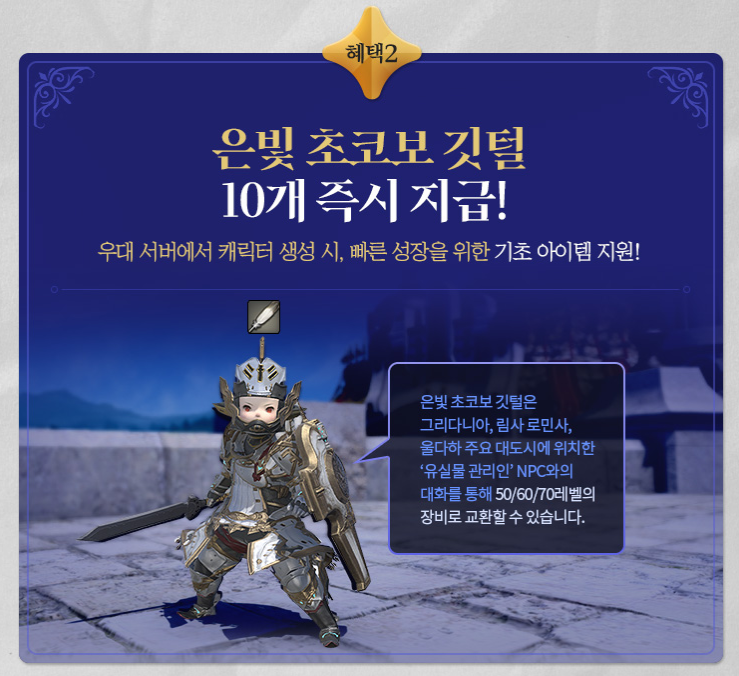 자세한 사항은 공식 홈페이지 "새소식" → "이벤트" → "진행중인 이벤트" → "모험가 성장 지원" 에서 확인하시길 바랍니다.