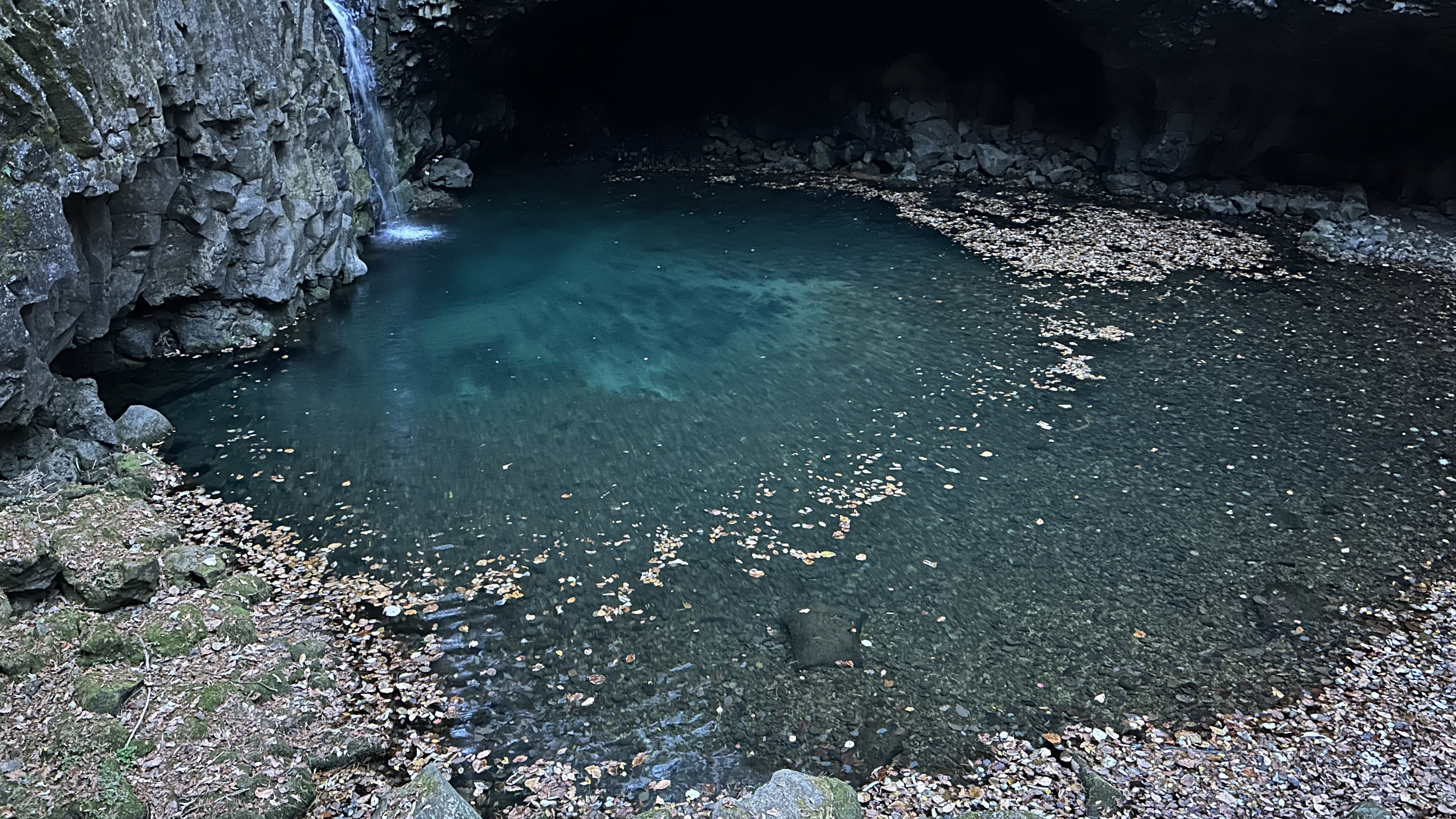 근처에 비둘기낭 폭포 라는 곳이 있어서 들러봤는데 조금 늦은 시간에 도착해서 그런지 어둑하더군요.
