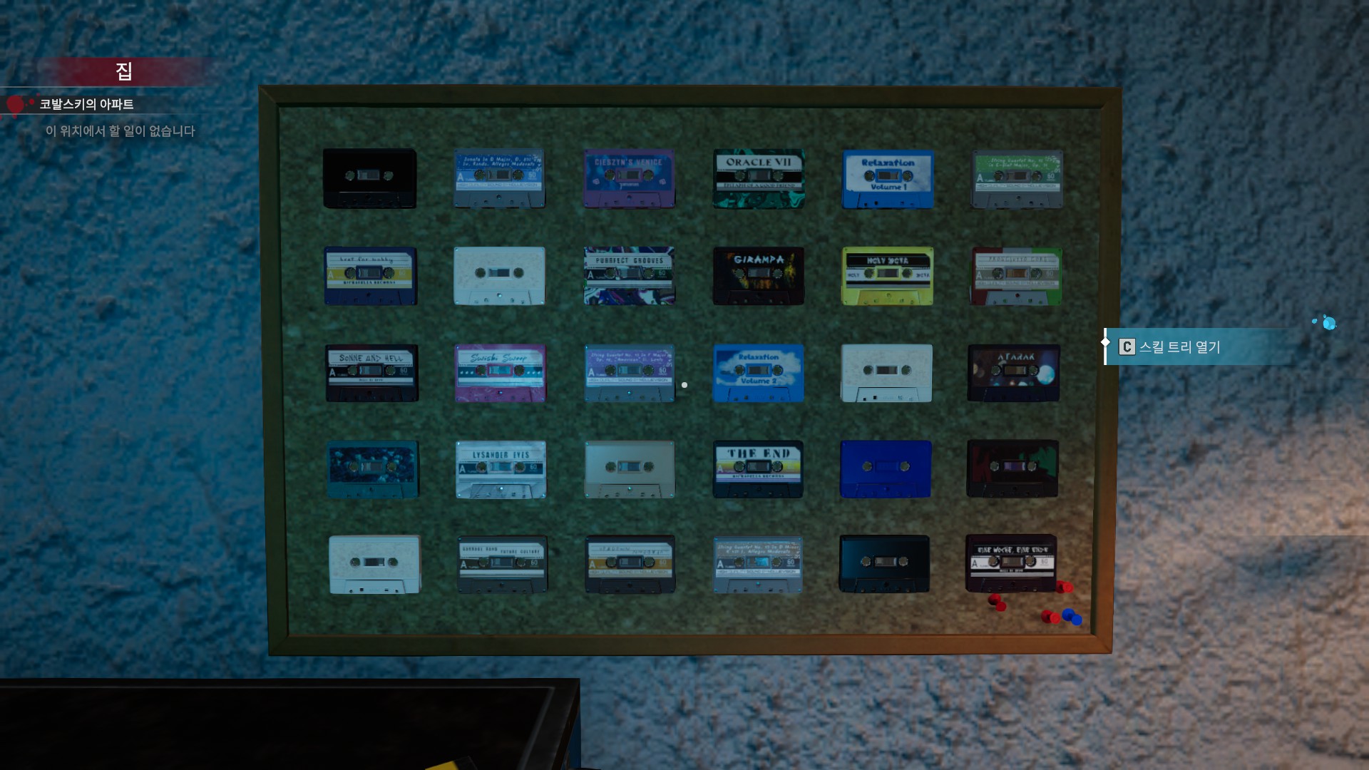 얻은 스킬 포인트는 주인공의 집에서 C 를 눌러서 스킬을 찍을 수 있습니다.