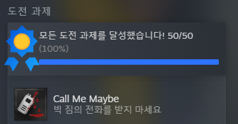 항상 다른 게임들은 100퍼센트 달성하기가 까다로워서 스토리 엔딩까지만 본 다음에 도전과제 전부 클리어할 염두도 못내고 접었습니다만 이 게임은 정말 쉬워서 손쉽게 모든 도전 과제를 깼습니다 ㅎㅎ
