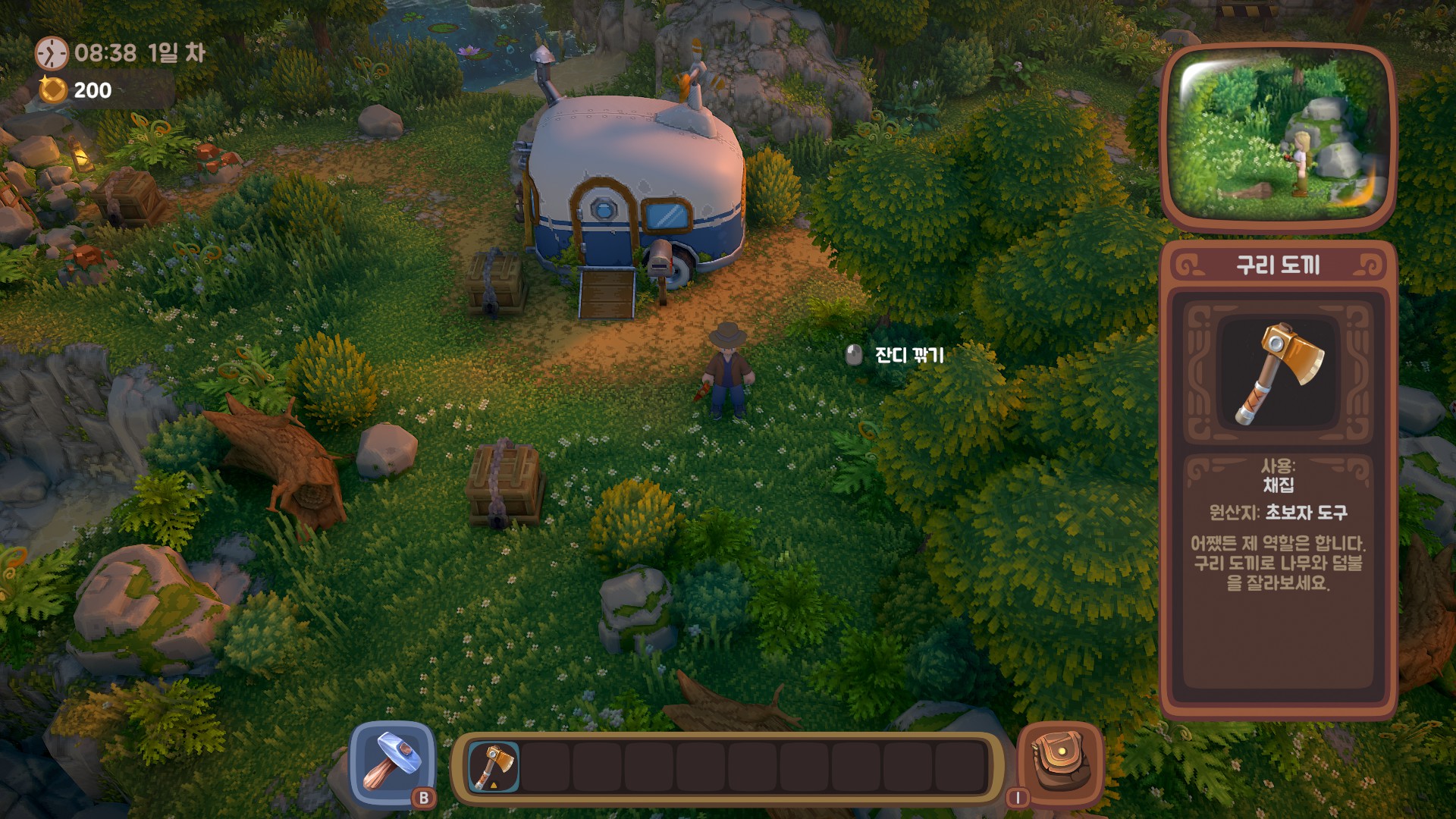 집(캠핑카) 주변의 땅을 정리하고 작물을 재배여 팔거나 아이템 제작에 사용하고